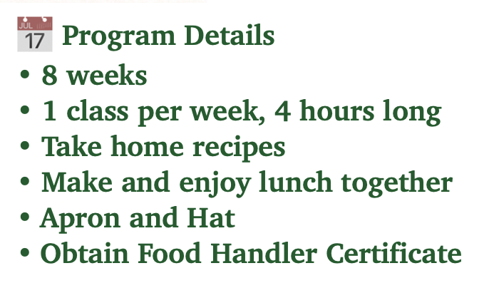 This program empowers individuals with disabilities and other barriers to improve their health, independence, and overall quality of life through hands-on cooking, guided practice, and practical reinforcement. This free class is offered throughout the year. Please get in touch to learn more.